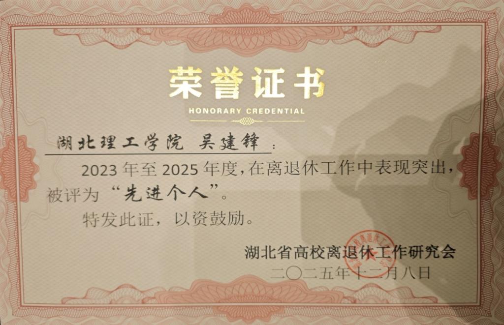 会议伊始,襄阳市老干部局,湖北文理学院、襄阳职业技术学院领导同志分别致辞;省高校离退休研究会会长何小红做2025年年度工作报告,省教育厅及研究会秘书长等同志作重要讲话,会议对全省高校14个”先进集体“78名”先进个人“进行表彰,我校离退处吴建锋同志荣获”先进个人奖”。